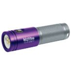 Underwater LED dive light with multiple white output levels and red LEDs. Anti-corrosion anodized aluminum alloy construction and a 120° wide beam make it suitable for deep diving.