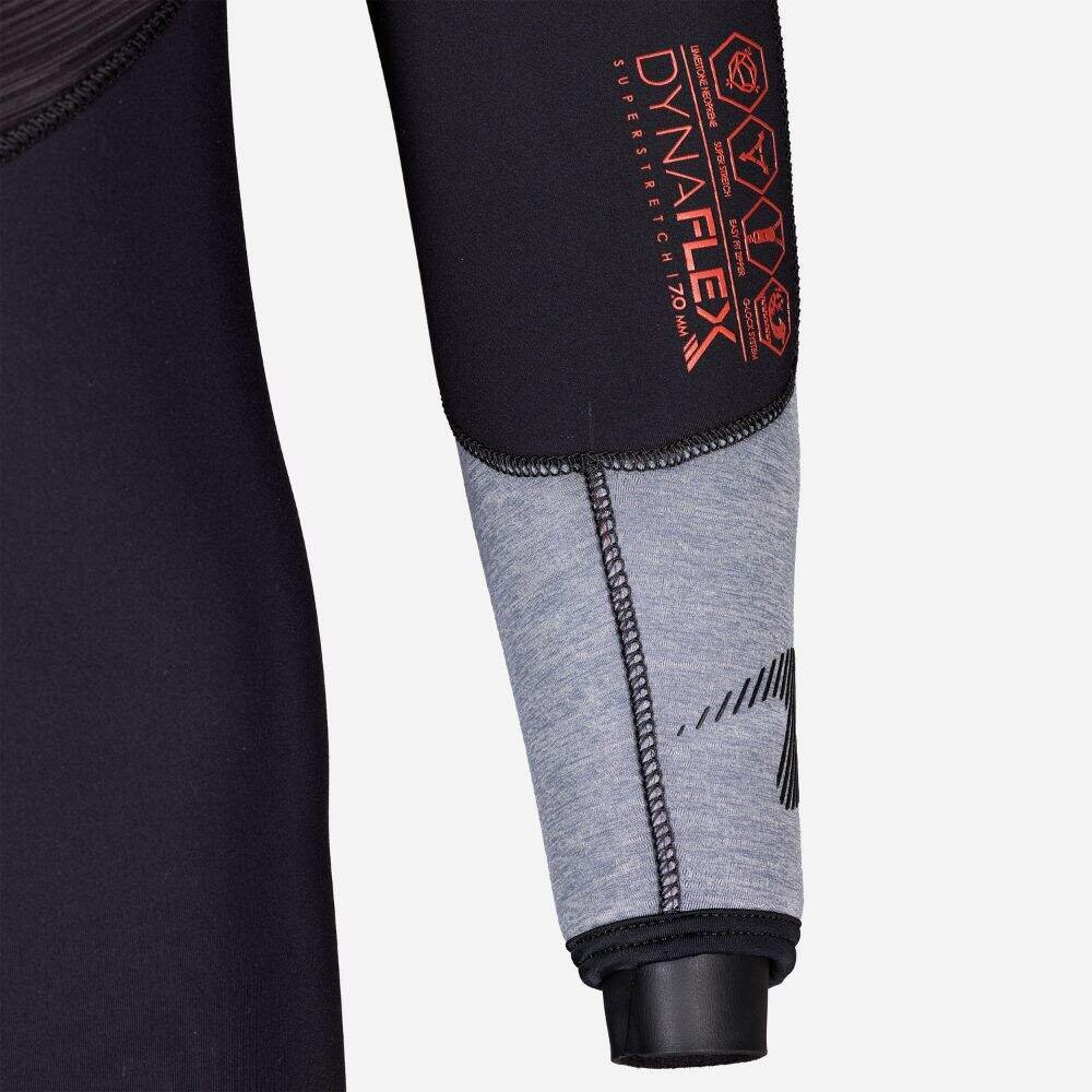 • Double seals on arms and legs to limit water entry and aid donning/doffing.