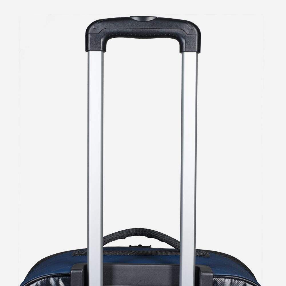 - Telescopic handle and robust wheels for easy transport, plus fabric handles for lifting.