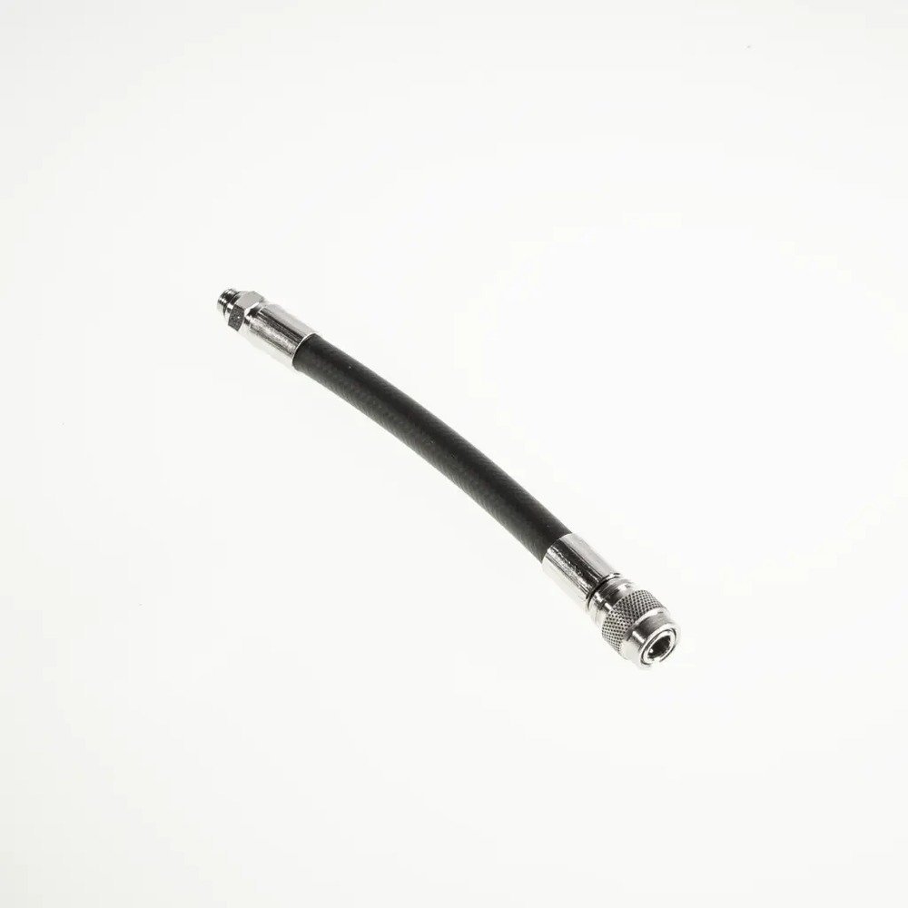 Durable low-pressure rubber hose with a quick connector, designed to link the first stage of your regulator to a drysuit inflation valve or inflator head. Flexible and reliable for safe, easy operation underwater.