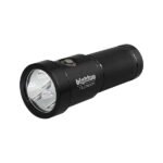 Compact 3-LED dive light with a hard-anodized aluminum alloy body, detachable 32650 battery, and a tested depth rating of 100 m. Offers four output levels up to 2,900 lm and a narrow 10° beam for long-range illumination.