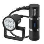 High-performance light with a narrow 10° beam and four XML LEDs, offering selectable brightness levels and extended burn times.