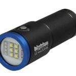 Compact, high-output LED light designed for underwater use; tested to 100 m.