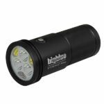 High-output LED light with multiple beam modes and red LEDs; tested to 100 m depth.